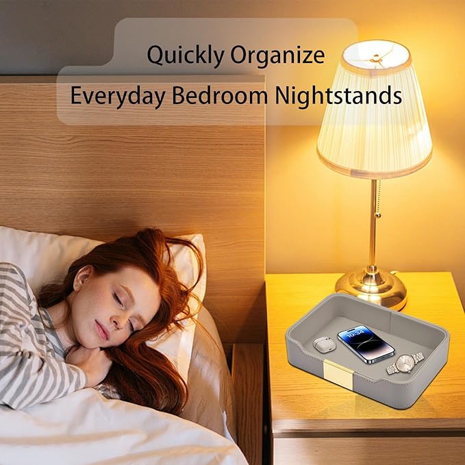Leather Jewelry Tray Desktop Storage,Luxury Perfume Tray Nightstand Organizer Entryway Decorative Tray,for Jewelry Watch Cosmetics Keys Phone Wallet Home & Office Accessories,Gray