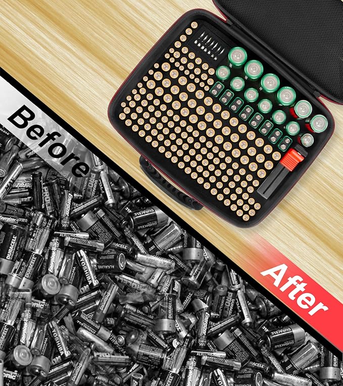 - 【STORE & ORGANIZE YOUR BATTERIES SAFELY】 Do you have trouble finding the batteries you want because you can't find them? Organize your batteries like never before with this Battery Organizer Storage Case. Lets you find the battery quickly. Designed to hold a variety of batteries, including AA, AAA, C, D, 9V, or LR44, cr44 lithium coin cells, this case ensures safe storage, reducing the risk of short circuits. It's the perfect solution for keeping your drawer tidy and your batteries in check. (Batteries Not Included)