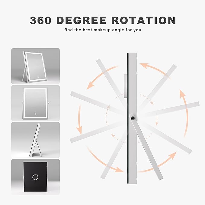 - **Brightness Adjustable & 3 Color Lighting Modes** - Select your perfect lighting with touch controls. Three color temperatures: warm light (3000K), natural light (4500K), and cool light (6000K) with 20%-100% brightness adjustment to simulate any lighting condition