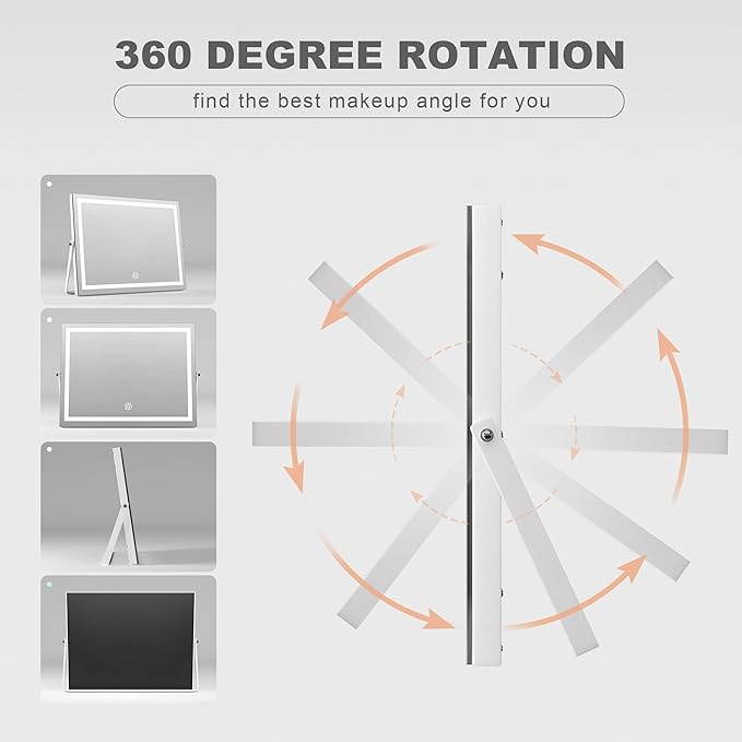 - 360° Rotation: 360 degree free rotation allows you to place this lighted makeup mirror swiveled to each side easily and help you see more detail, convenient for you to select the best angle or position