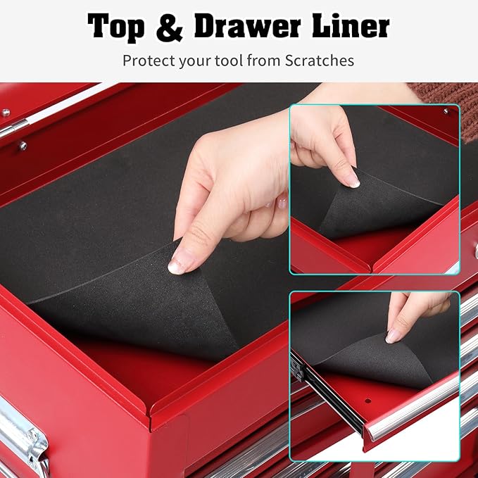 - EASY TO USE - The drawers in storage cabinet tool box all come with ball bearing slides for smooth opening and closing, and each tier is lined.