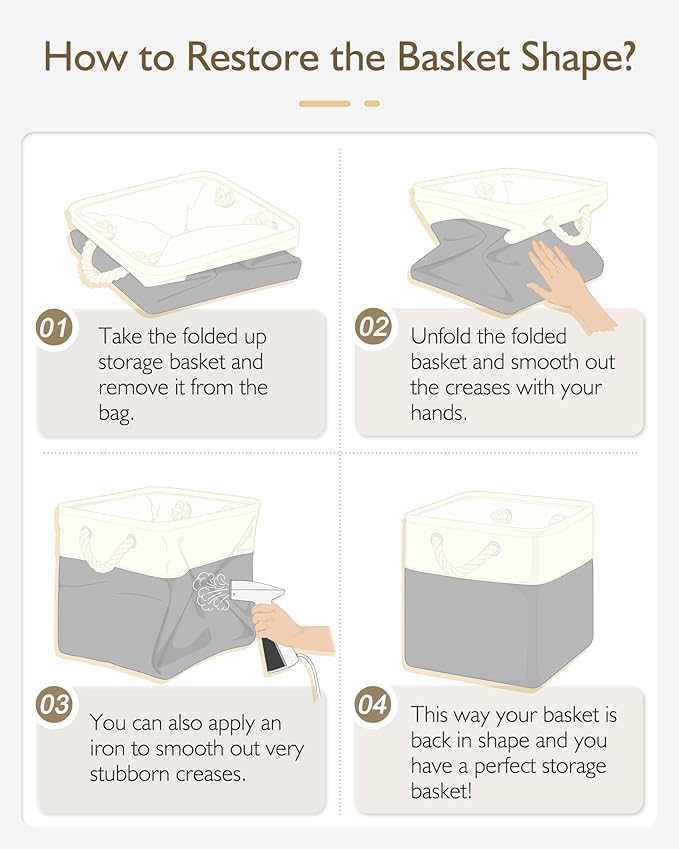 - Easy Maintenance: The fabric exterior is simple to keep clean by dusting with a soft, dry cloth. Any creases from packaging can be smoothed out by unfolding the bin or using a low-heat iron.