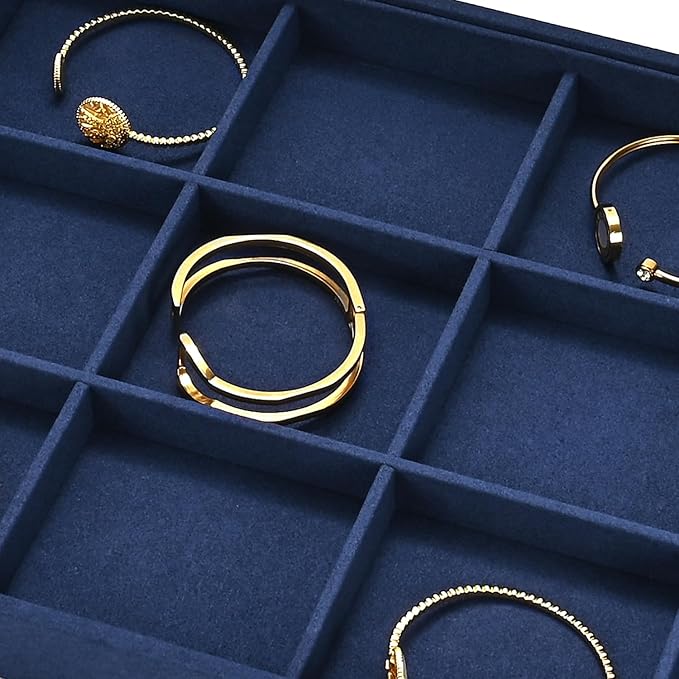 12 Grids Jewelry Tray Bracelet Tray Bangle Tray Microfiber Jewelry Display Tray Stackable Jewelry Trays for Bracelet Bangle Holder Watch Earring Brooches Display Tray (Blue)