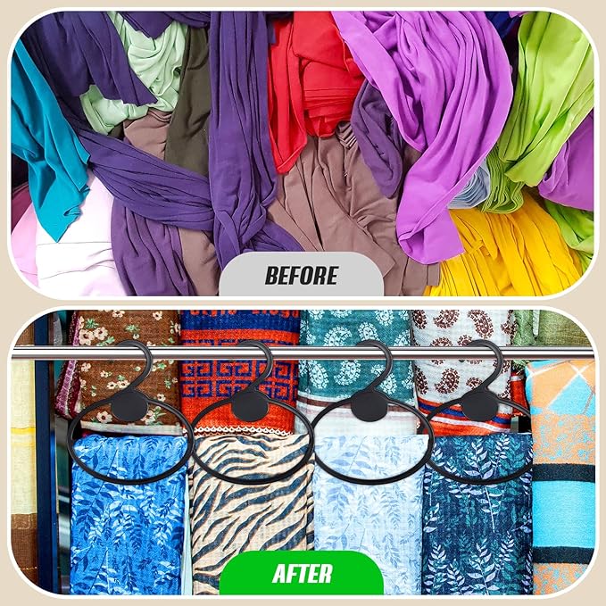 - Compact Size: the scarf organizer measure about 5.5 x 3.9 x 0.2 inches/ 14 x 10 x 0.5 cm and about 11 g; Despite their compact size, each hanger can comfortably hold a scarf without letting it fall; It's an effective solution to managing your valuable scarves without taking up too much closet space