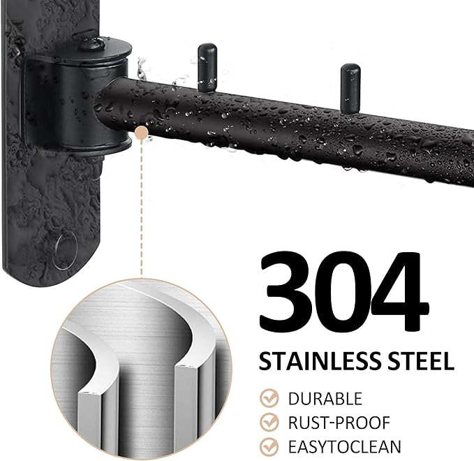 - 【Premium Quality Material】Constructed of quality stainless steel, the folding clothes hanger rack is coated in ultra high temperature black spraying for a rust-proof, sturdy, and corrosion-resistant finish, which allows you to hang wet clothes without oxidation, fading and paint off