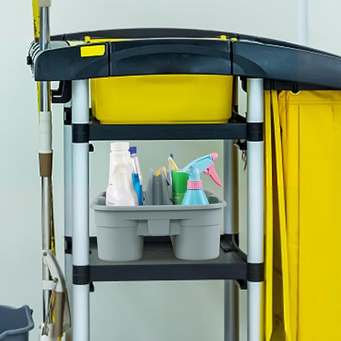 - Commercial grade carrying caddy, sturdy and durable, with a hollow design in the middle of the bottom that can match most cleaning carts