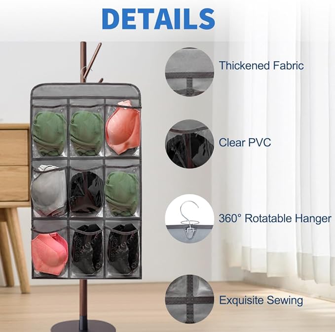 - Hanging shelve for closet comes with one inner 360 degree rotating hanger, which can be hung on the rod of the wardrobe or on a hook behind the door. Can be rotated in any direction you want, ensure you to easily browse and pick the storage items from dual-sided pockets.