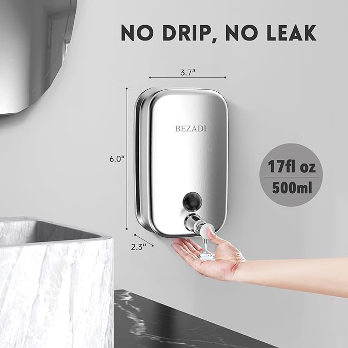 Commercial Soap Dispenser Stainless Steel Wall Mount for Bathroom and Kitchen with Premium Anti-Leak Pump and Corrosion-Proof Lining 17oz/500ml 8182