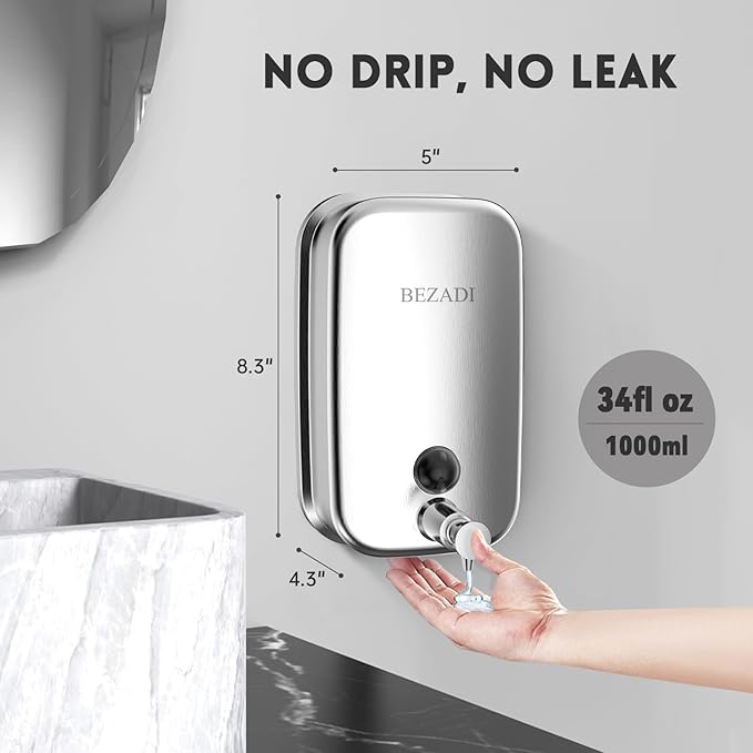 Stainless Steel Hand Soap Dispenser for Bathroom Kitchen 35fl oz/1000ml Wall Mount Liquid Soap Dispensers 8183