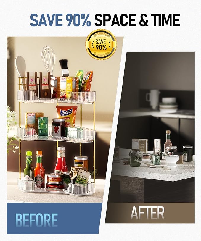 - Versatile 90° CORNER Organizer for Every Room:This bathroom countertop organizer isn’t just for bathrooms! Its compact size makes it perfect for kitchens, bedrooms, or dressers. Store skincare, makeup, toiletries, or even kitchen spices—this shelf adapts to your needs, adding style and functionality to any space.