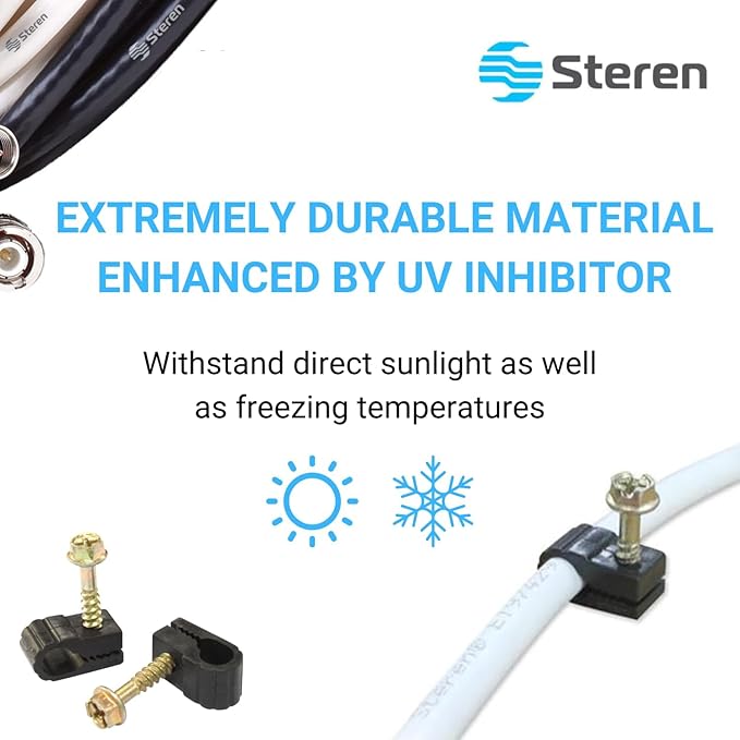 - DURABLE CABLE CLIP: Steren wire clamps are manufactured from an extremely durable polyethylene.