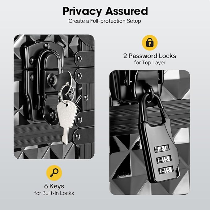 - With Password Locks:This hair stylist rolling case is equipped with six keys to open the box's built-in lock, and two password locks to lock the top layer of the box. Four universal wheels(two of them have brakes), a pull bar, and a top handle allow you to move this product easily whether you are moving indoors or traveling for business or pleasure.
