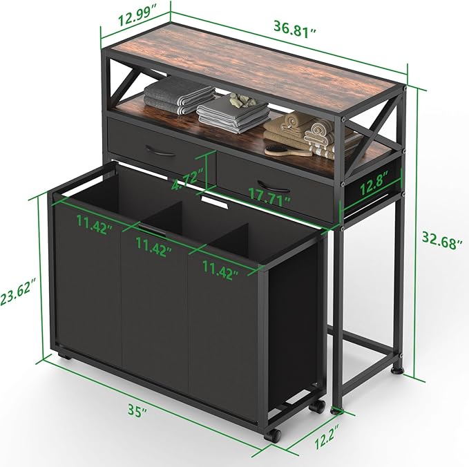 - Premium Quality Materials Laundry Hamper with 3 Compartment: The wheeled laundry sorter cart's frame is high-strength steel with an anti-rust surface. Each laundry basket is made of thickened oxford fabric, the lining cloth with a waterproof coating. The top shelf is made of 15mm MDF wood.