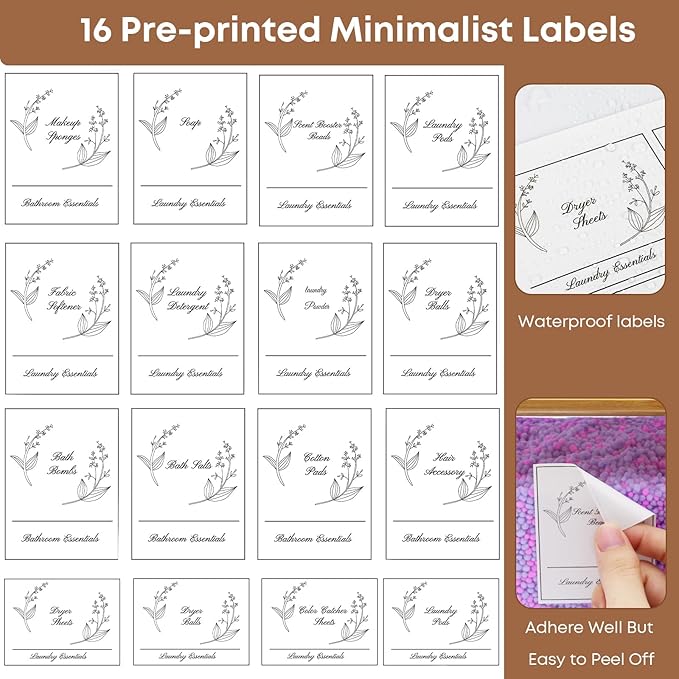 - Package Includes: The laundry containers for organizing set includes 3 laundry pod jars with lids, 1 dryer sheet container, 2 clear spoons, 16 pre-made waterproof labels and 1 screwdriver. Elevate your laundry room organization and storage with our stylish and multifunctional laundry detergent dispenser.