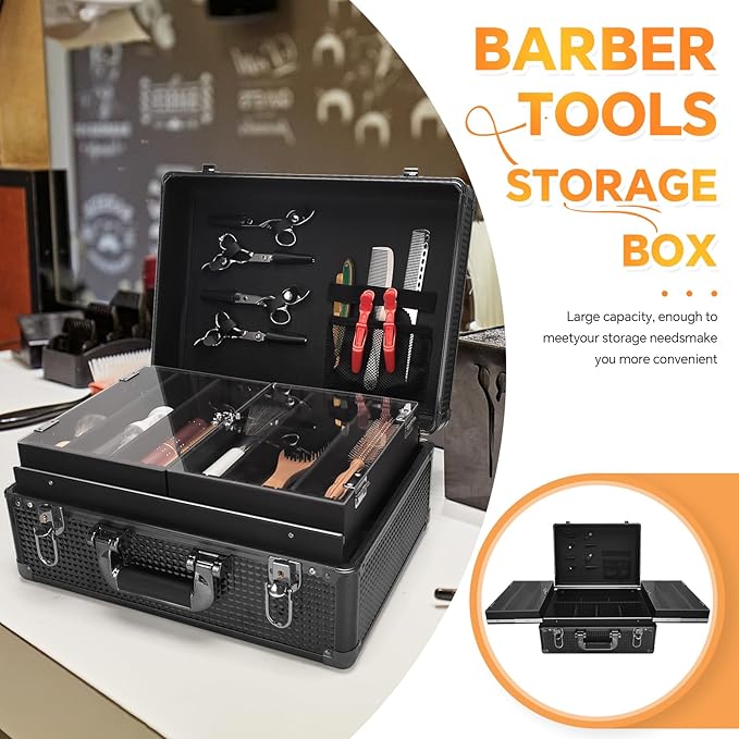 Makuep Train Case,Extra Large See-Through 6 Trays Makeup Box Travel Case Professional Cosmetic Storage for Makeup Artist, Nail Tech, Hairstylists Salon Barber Case