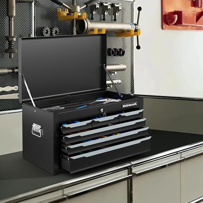 IRONMAX Portable Tool Box, 6 Drawers 24’’ Lockable Tool Storage Organizer Toolbox with Ball-Bearing Slides & Liner, Metal Tool Chest for Warehouse, Garage, Workshop, Household