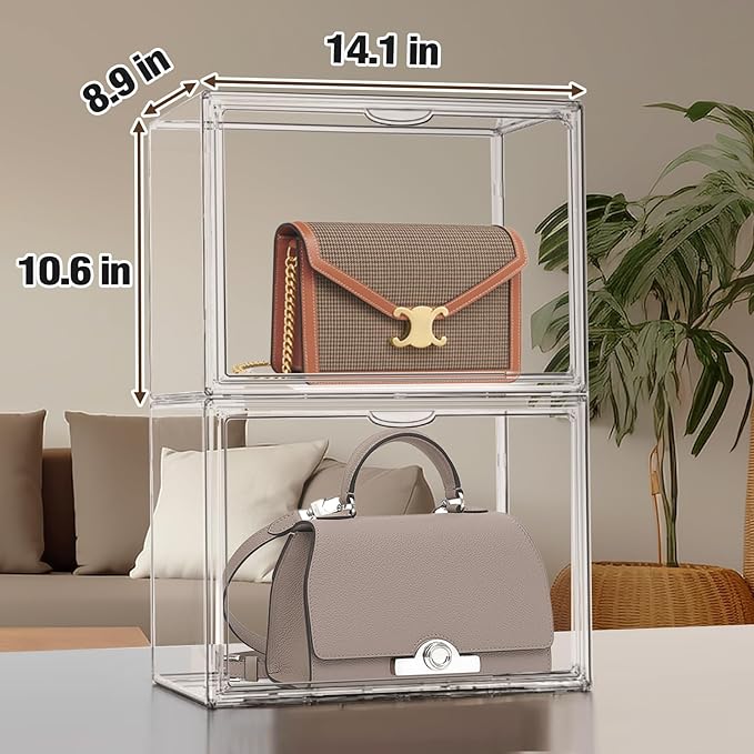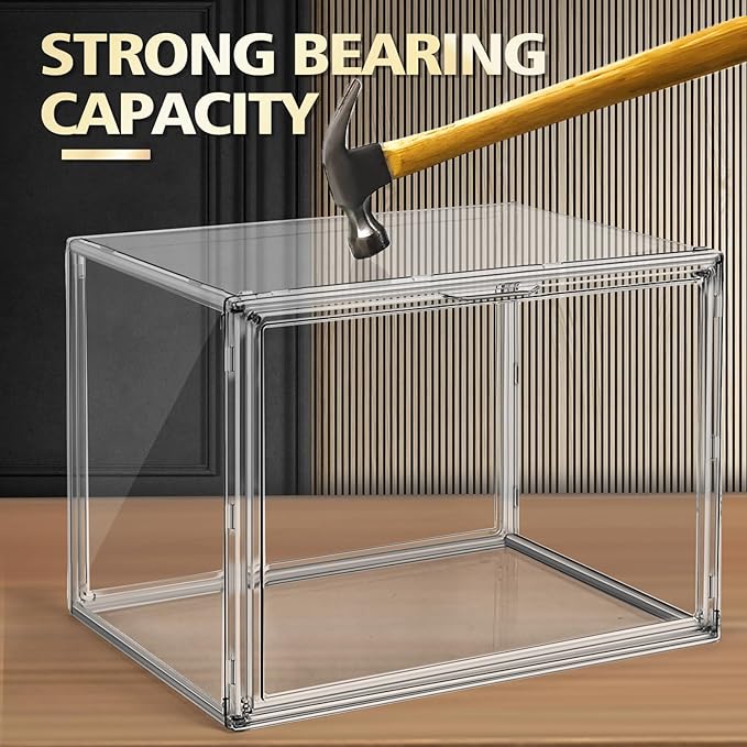 1 Pack Size 14 Acrylic Boot Shoe Box, X-Large Handbag Organizer Clear Storage Bins with Magnetic Lid Acrylic Display Case for Shoes, Book, Cosmetic, Figures, Collectibles, Purse