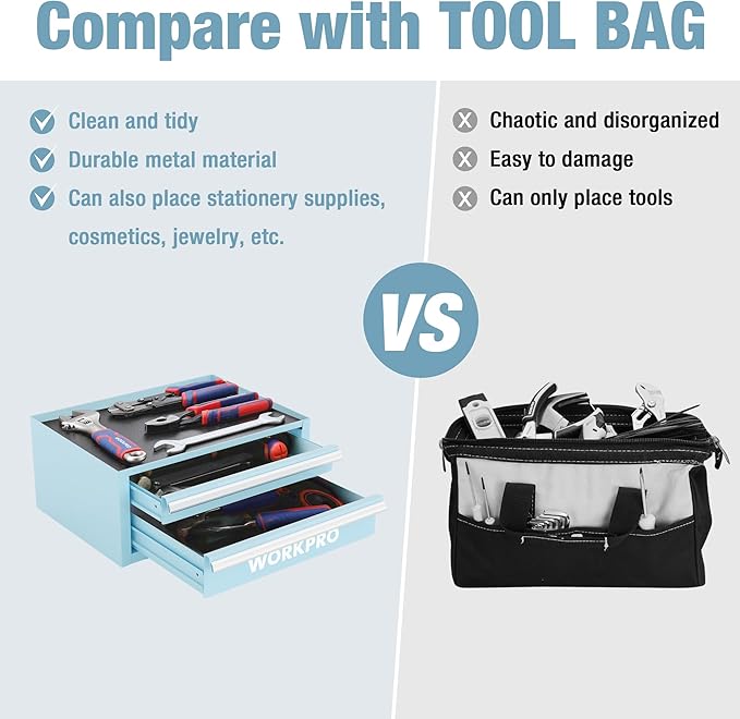 - Well-Organized Design: The small tool box has 2 drawers and an open top storage compartment, ensuring flexible and well-organized storage. There is a magnetic catch behind each drawer that prevents it from sliding out accidentally, enhancing safety during use