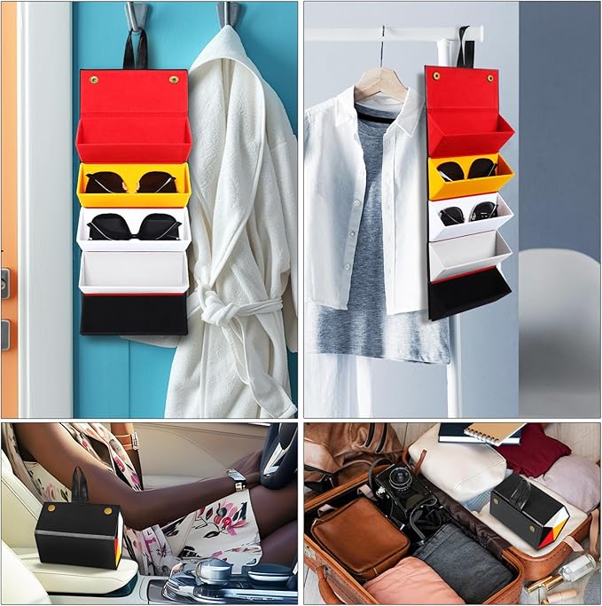 - 【Sunglass storage organizer is the best gift】Sunglass holder with a classic geometric design and stunning color scheme, the sunglasses case is the perfect gift. It is the best choice for your lover, boyfriend, girlfriend, parents, family and friends. Multi sunglasses case will be a very thoughtful gift choice for birthdays, Father's Day, Mother's Day, Thanksgiving, Christmas, New Year, and other special holidays.