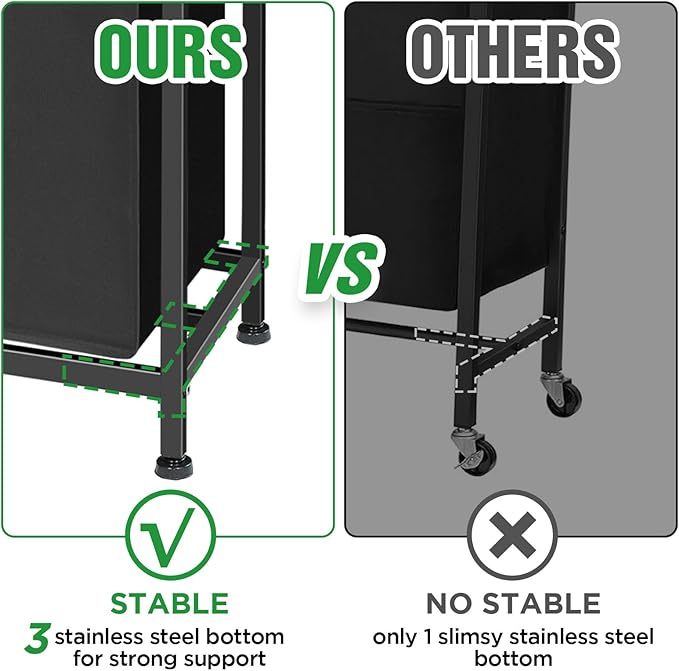 - Durability Meets Capacity: Crafted from high-quality materials, this sturdy laundry basket is built to handle heavy loads. This laundry basket offers strong support (shelf: 100 lbs, each bag: 33 lbs).