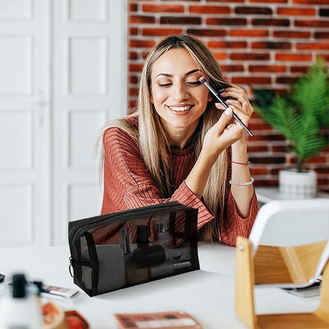 - 【Practical Mesh Bag】: The travel makeup bag is designed to be transparent, that you can see the inside items directly, saving you time for finding things. Smooth top zipper, easy to open and close, will give you a good use experience.