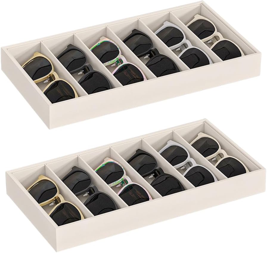 Sunglass Organizer Tray,Eyeglass Storage for Multiple Glasses,Jewelry and Sunglasses Drawer Organizer (Beige 2)