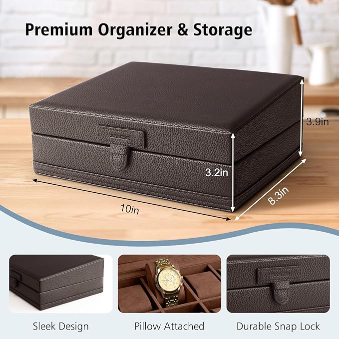 - 【WATCH CASE BOX SIZE】Product size: 10 x 8 x 2 inches, providing ample space to store up to 5 watches securely and conveniently.