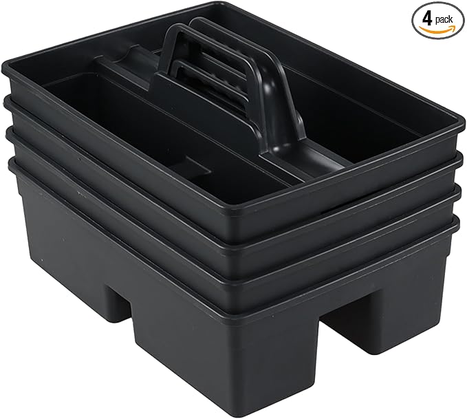 4-Pack Plastic Cleaning Caddy with Handle, Cleaning Caddy Tote, Grey, 15.19" x 10.78" x 4.52"