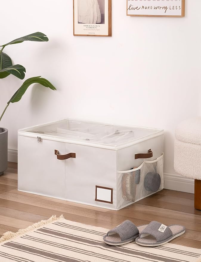 - 3 Reinforced PU Handles: This shoe cubby storage bin is fitted with PU handles on all three sides, making it easy to push, pull and lift around at multiple angles.
