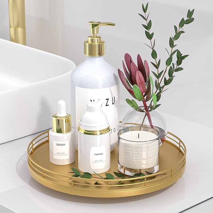 - ๐ ๐๐น๐๐ถ-๐ฃ๐๐ฟ๐ฝ๐ผ๐๐ฒ ๐จ๐๐ฎ๐ด๐ฒ: Perfect for a wide range of occasions and spaces. Whether used as a centerpiece table decorations, a vanity tray in your bathroom, or an organizer on your kitchen, this versatile gold round tray adapts to your needs in any room