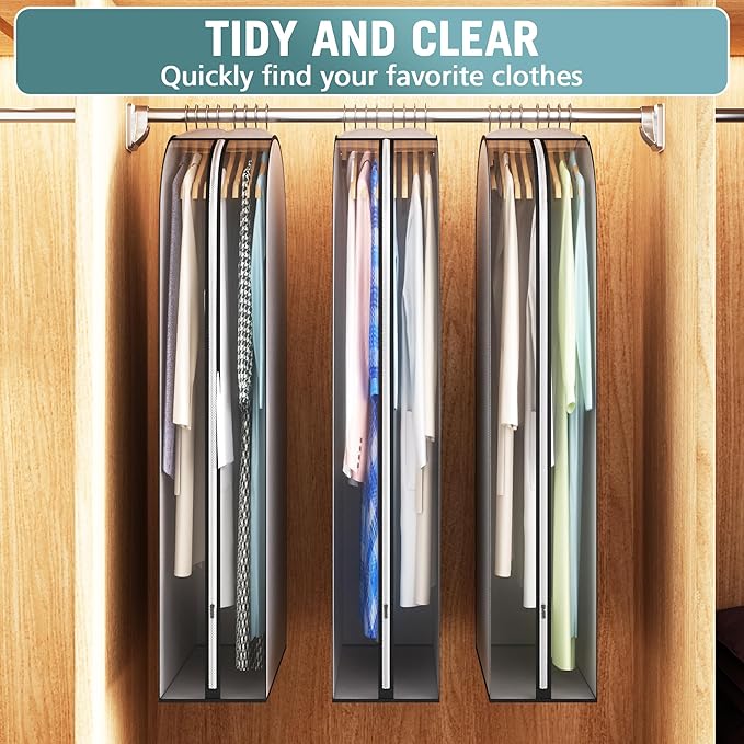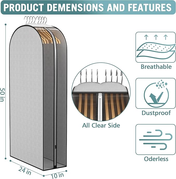 - 10” Gusseted & 3 Pack: Each garment bag can hold 10 suit or 8 winter coats without wrinkles.50 inch length is perfect for storing long coats, furs,Jacket, MIDI dresses and pants, etc