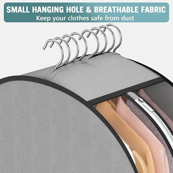 - Side All Clear & Breathable Fabric: 1 side is made of transparent PEVA that helps you see what's in each garment bag, you can easily find the clothes you look for. The rest are all made of breathable mesh fabric, odorless and durable, and visually cleaner
