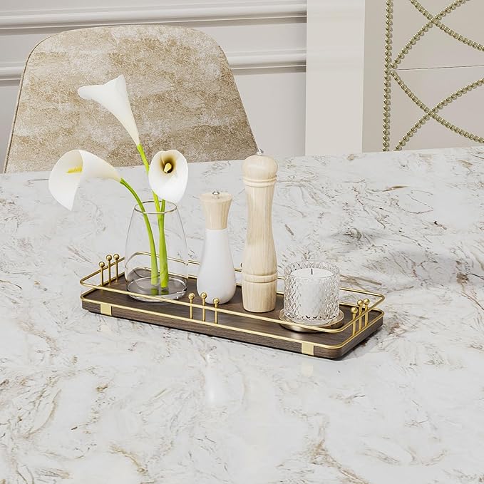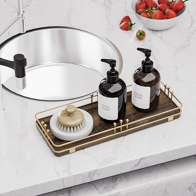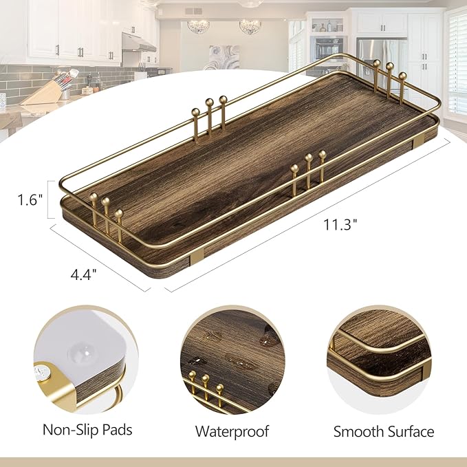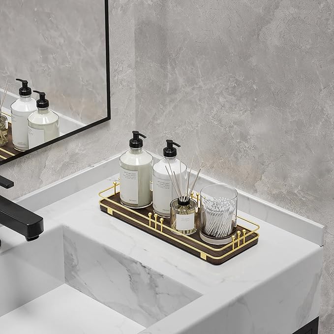 - Versatile & Functional: Our bathroom vanity tray enhances any space with its stylish design while serving multiple purposes throughout your home; Whether you use it as a bathroom tray, vanity tray, kitchen tray, decorative tray, perfume tray, jewelry tray, serving tray, catch-all tray, key tray, or toilet tank tray, it will keep your countertops tidy while adding a unique and stylish touch to any room