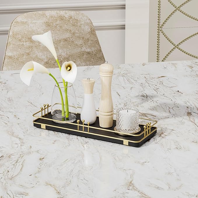 - Versatile & Functional: Our bathroom vanity tray enhances any space with its stylish design while serving multiple purposes throughout your home; Whether you use it as a bathroom tray, vanity tray, kitchen tray, decorative tray, perfume tray, jewelry tray, serving tray, catch-all tray, key tray, or toilet tank tray, it will keep your countertops tidy while adding a unique and stylish touch to any room