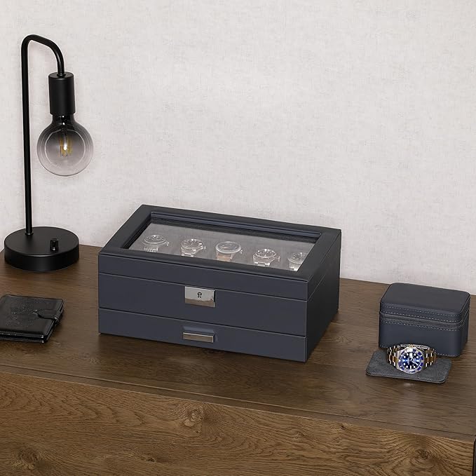 - INCLUDES VALET DRAWER: A slide-out drawer provides the convenience to hold additional items like straps, cufflinks, rings, tie clips, sunglasses, pens, money, cards, or watch tools.