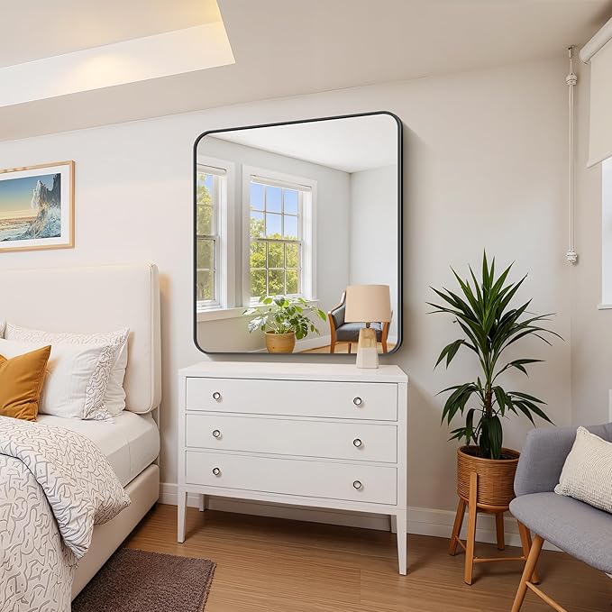 FORBATH Bathroom Mirror 36x40 Inch, Large Rectangular Wall Mirror with Black Aluminum Frame, Rounded Corners, Horizontal or Vertical Mount for Bathroom, Bedroom, Entryway