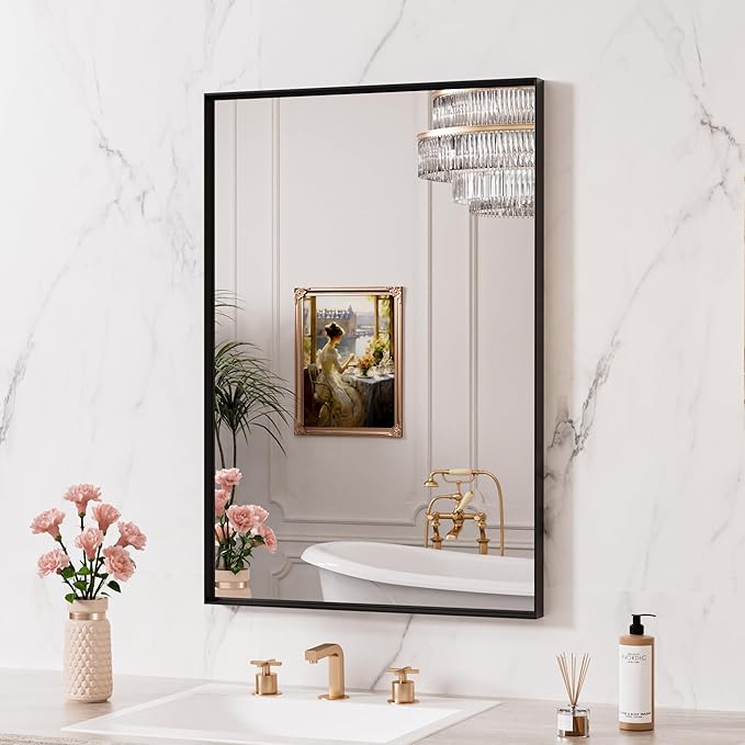 - 【Clear Reflection & NO Distortion】: LOAAO black rectangle mirror is designed with HD float glass to deliver a clear reflection with no distortion. clear lines, simple modern design.