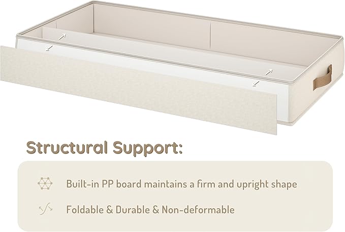 - 【Premium Fabric】Our underbed storage containers are crafted from two-ply thickened linen fabric that's odorless, eco-friendly, and durable. This high-quality material effectively keeps the interior dry and breathable, preventing clothes and bedding from dampness and mildew—keeping your items fresh and clean year-round