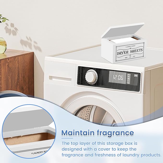 - Design with Lid: The top of this dryer sheet storage box is designed with a lid, which is dustproof and helps keep the fragrance and freshness of laundry products, and easy to open and access
