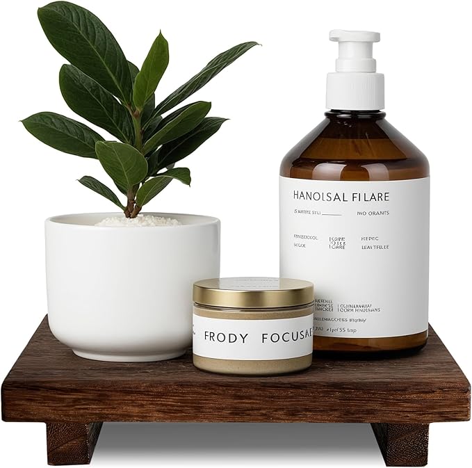 (9x6 Inch,Brown) Wood Riser Soap Tray, Rustic Wood Pedestal Stand Tray Farmhouse Kitchen Counter Decor Bathroom Soap Dish Holder for Sink,Vanity,Plant,Bottles, Candles Display