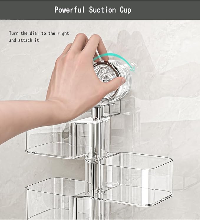 4-Layer Rotating Transparent Suction Cups Wall Mounted Organizer for Small Items,Bathroom Holder for Trinkets Hairpin Q-Tips mini beauty sponges (4-Tier-Clear, M)