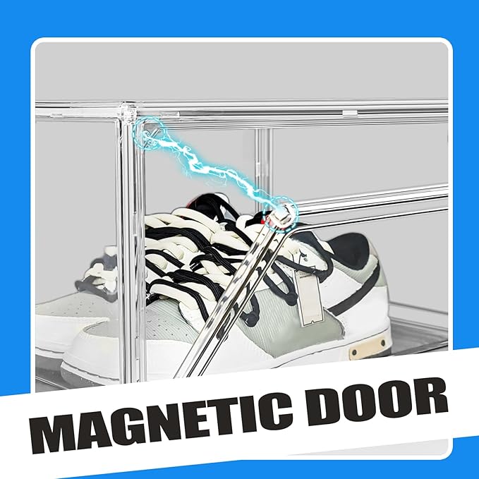 10 Pack Acrylic Shoe Display Case, Size 12 Sneaker Storage Box Stackable Shoe Containers with Magnetic Lid, Clear Shoe Storage Cabinet for Entryway, Closet, Underbed,Hallway, Bathroom, Balcony