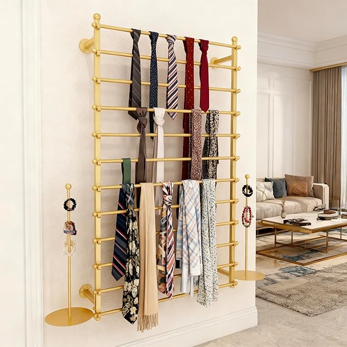 - 【Widely Used】Wall-mounted display rack. For commercial retail and home storage, can perfectly organize and display all your ties, scarves, silk scarves, belts, ribbons, fabrics ect. For florists and craft rooms, it can store Wrapping Paper, Ribbon, Spool Silk, Needlework Rolls, Fabric cloth, etc. providing your home or retail store with a powerful ability to organize or display
