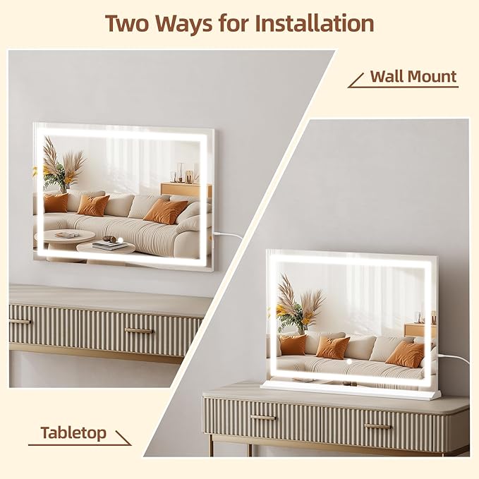 - Tabletop & Wall-Mounted:This Hollywood makeup mirror comes with a detachable base and two back holes. Vanity mirror includes wall hardware and screws for both tabletop and wall-mounted use, helping you save valuable desktop space.