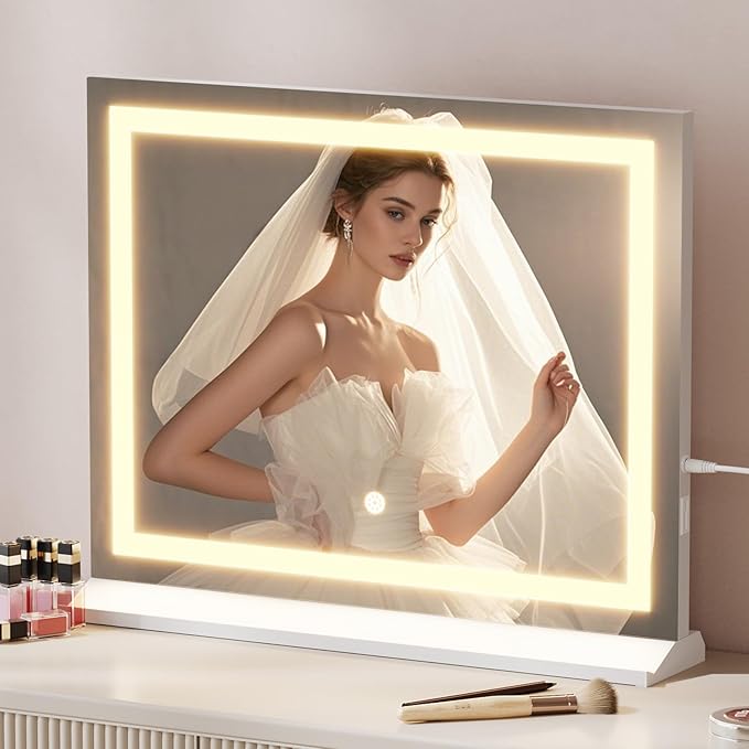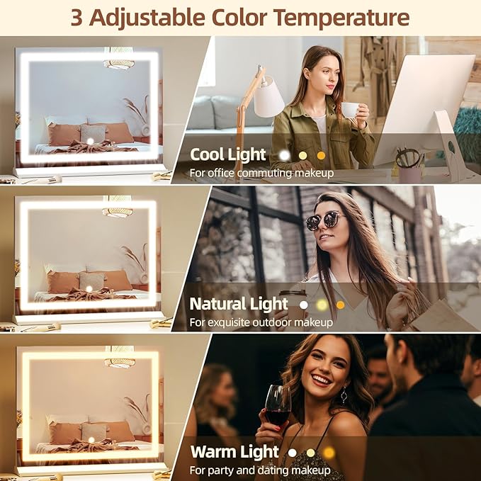 - Professional Lighting & Brightness Adjustment: This vanity mirror with touch button to choose your favorite lighting, warm white (3000K), natural white (4500K) to cool white (6000K) 3 color temperatures to choose from, also supports 30% - 100% brightness adjustment. Makeup mirror with eye protection LED light bar, lasting more than 50000 hours, simulating a variety of occasions lighting, to meet the needs of personal makeup.