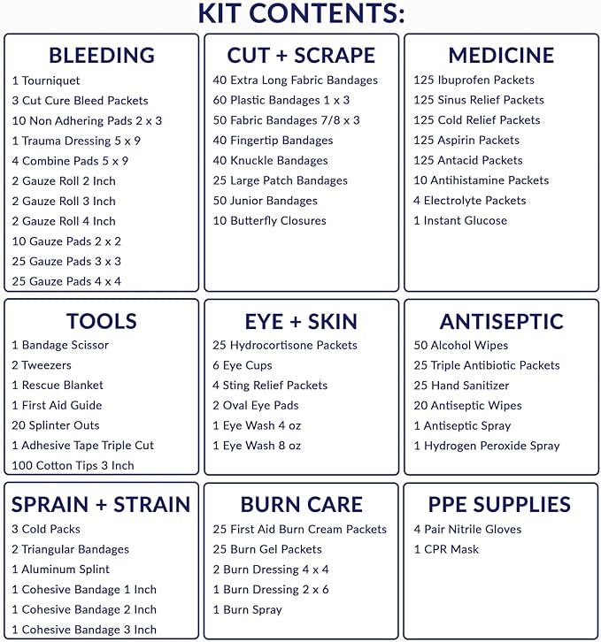 - HIGH-CAPACITY DESIGN: Our Deluxe First Aid Cabinet houses over 1400 pieces of vital First Aid Supplies, ready for any emergency. This large First Aid Kit becomes your frontline solution for safety at work. Includes Easy to Refill QR code.