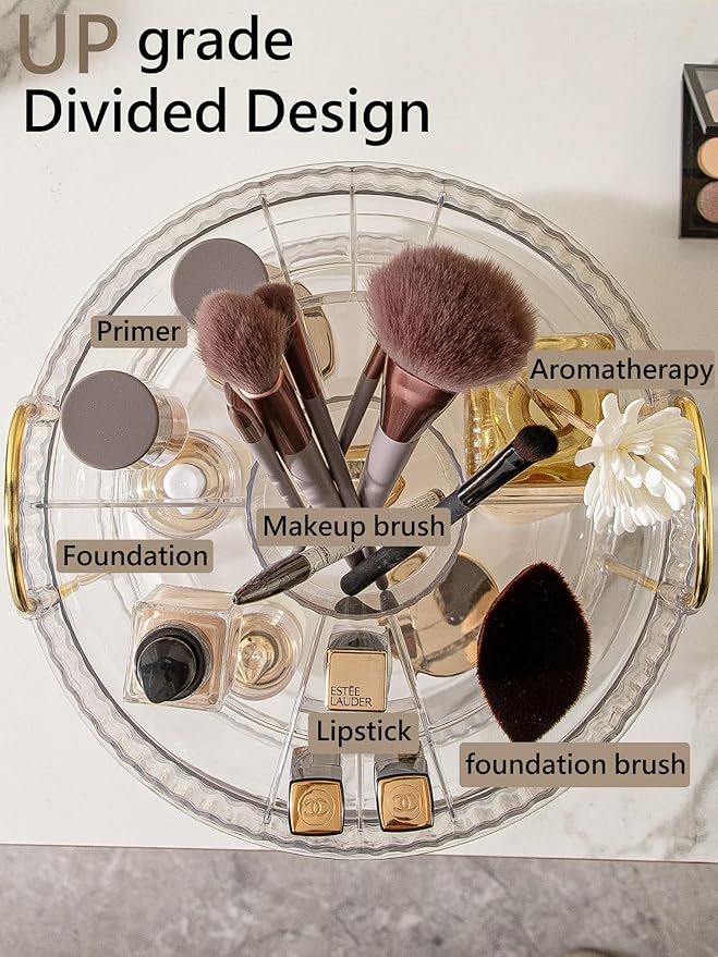 - STREAMLINE YOUR BEAUTY ROUTINE WITH 360° ROTATION - The skincare organizers boasts a large capacity make up organizers and storage with the added convenience of a 360-degree rotating feature. No more digging through cluttered drawers or struggling to find your favorite beauty products. With our cosmetics organizer, everything is easily accessible and within arm's reach with just a simple spin.