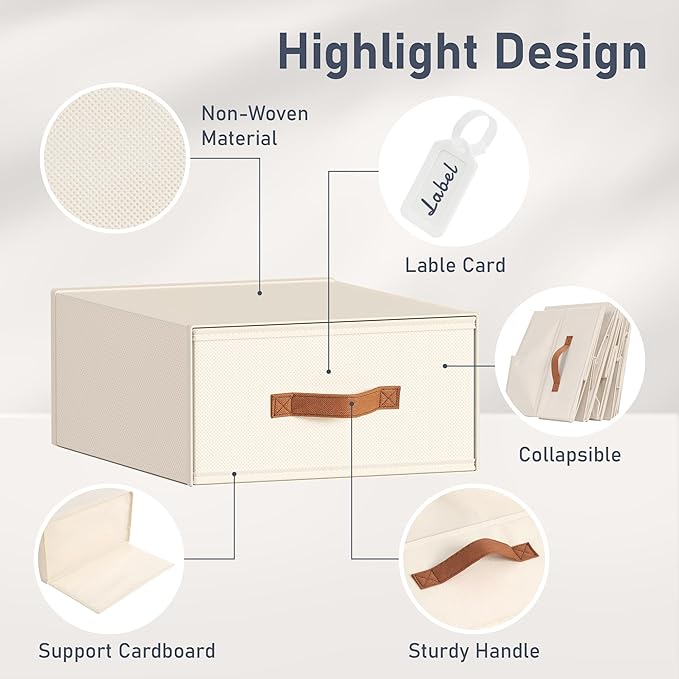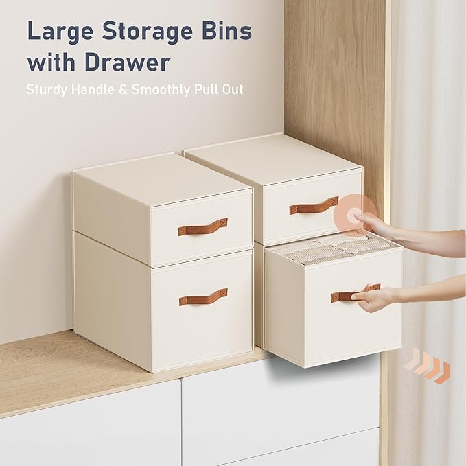 DIMJ Closet Organizers and Storage - Fabric Storage Bins with Drawers Stackable Closet Bins with Labels for Clothes, Sweaters, Bedding, Collapsible Storage Cubes for Bedroom, Living Room, Shelf