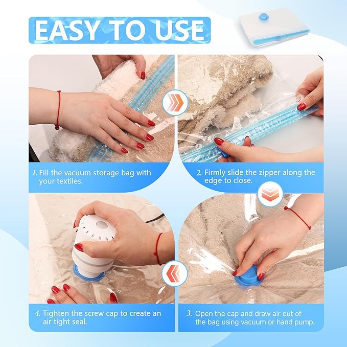 - 【COMPACT ELECTRIC PUMP INCLUDED】Our Vacuum seal storage bags will come with an electric pump to help suck the air out of the vacuum bags, which is faster and easier compared with the hand pump. Except the electric pump and the hand pump, these vacuum bags can also work with VACUUM CLEANER, really easily used in daily life.