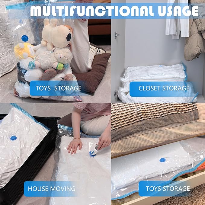 - 【COMPREHENSIVE 10 PACK XXL JUMBO】Our XXL vacuum storage bags are the perfect solution for storing bulky & oversized items like comforters, duvets, cushions and toys;With a size of 47.2 x 35 inches,these bags are the largest suction space savers on the market and sent with 1 electric pump,these vacuum bags make it easier than ever to keep your home clutter-free and organized.